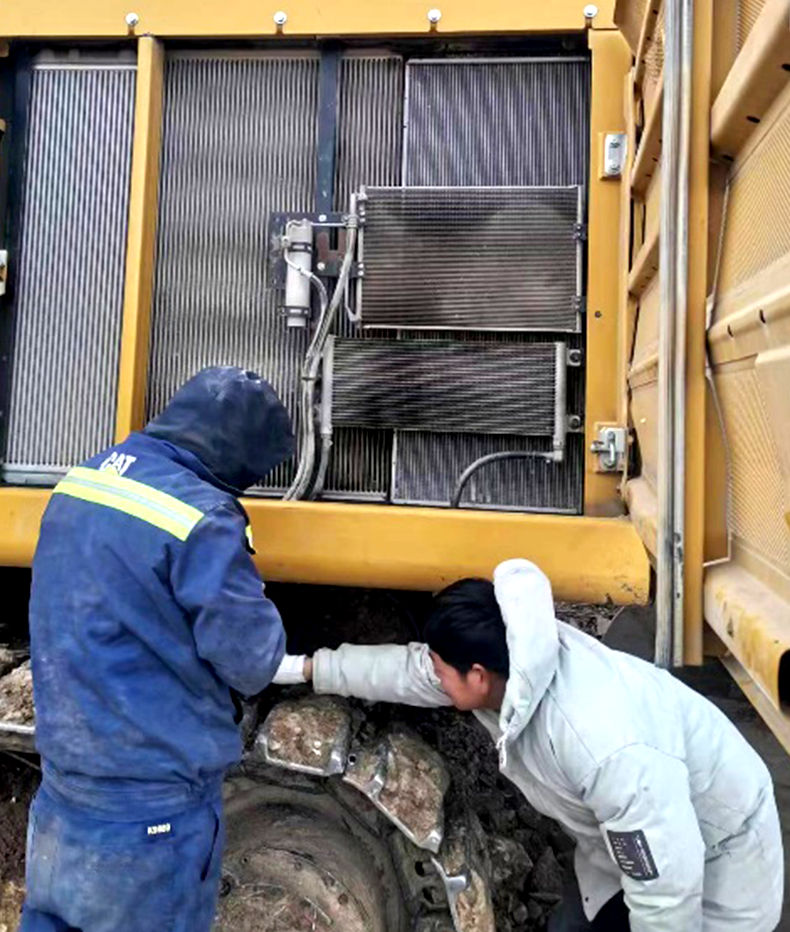 2023年2月初,客户的工程面临着工期紧,任务重且施工环境复杂等情况。“屋漏偏逢连夜雨”。一天,客户的一台Cat 349在施工时水箱被意外撞坏,需要更换。接到客户的紧急报修电话,JIUYOU.COM九游(中国机械售后服务团队立即研判决策,考虑到路途遥远的因素,决定让服务人员携带配件,连夜坐车,历经两天两夜赶到现场,第一时间帮助客户解决了问题,没有耽误客户的工期进度。